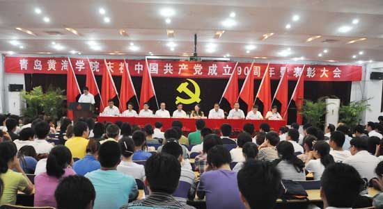 6月28日下午,青島黃海學院在一號教學樓西報告廳隆重召開了慶祝中國共產黨成立90周年暨表彰大會。學院領導、各單位各部門負責人、全體教職工黨員、學生黨員代表和入黨積極分子代表共300余人參加了會議。在主席臺就坐的有院黨委書記馮宜明,山東省高校工委派駐我院黨建聯絡員陳稷玲,黨委副書記及黨委全體委員和高職院院直黨總支書記賀永宜、綜合院院直黨總支書記楊春聯。會議由學院黨委副書記宋慶澤主持。