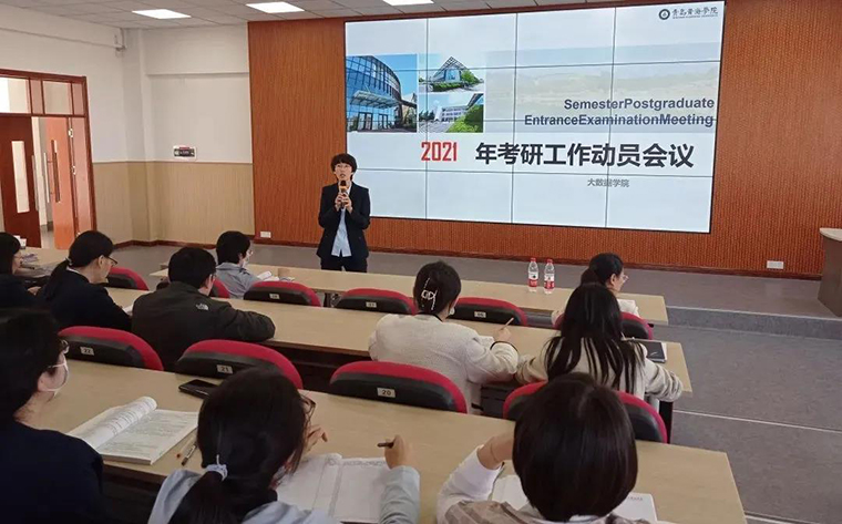為了提高人才培養質量,拓寬學生成人成才渠道,進一步營造良好的學風、教風,提高大數據畢業生的社會競爭力和緊跟時代步伐。2021年10月12日下午,大數據學院在知新樓二樓東配報告廳舉行了考研、專升本工作動員會。會議邀請了青島黃海學院副校長梁忠環和繼續教育中心主任郭敏對大數據學院中層干部、教研室主任、輔導員、學業導師等進行了考研、專升本的專題講座,會議由大數據學院常務副院長尹成波主持。