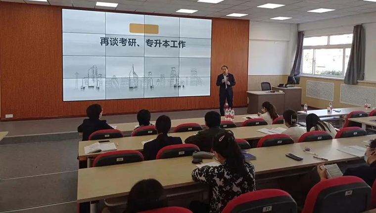 接下來,梁忠環副校長以《再談考研、專升本工作》為題,為大家呈現了一場精彩的知識盛宴。梁校長用為什么抓升學率?抓升學率是否符合我國高等教育發展趨勢?抓升學率的理論依據是什么?三個問題導入,引發大家對人才培養質量的思考。同時從社會發展趨勢、高等教育發展方向、教育理論等多角度分析了二級學院作為基本的育人單位,更應該發揮主動性、能動性,為學生營造良好的學習氛圍,教育青年學生現在不是躺平享樂的時候,應該走出舒適區,勇于挑戰自我,追求卓越。