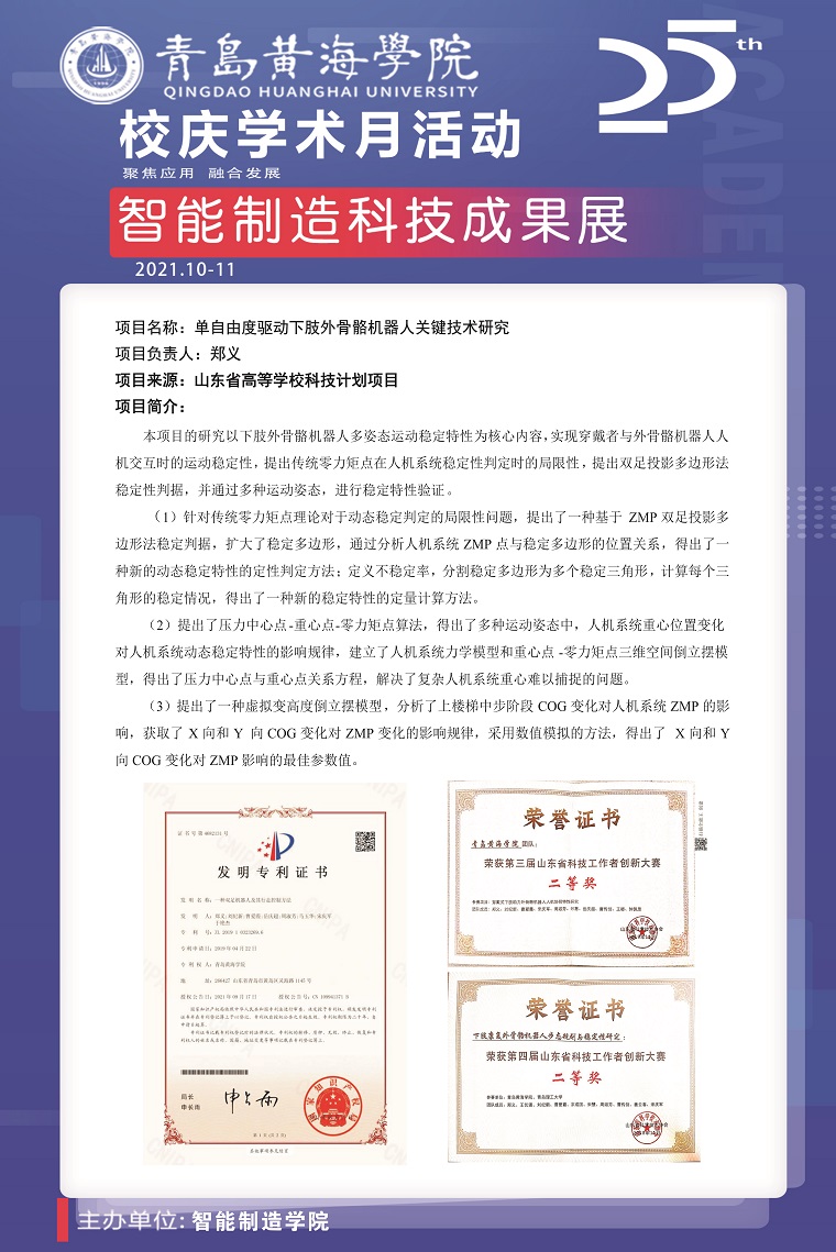 10月16日-22日,智能制造學院開展了“校慶學術月——智能制造科技成果展”活動。