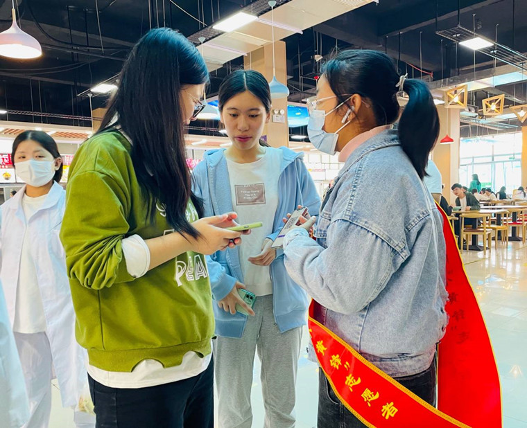就餐師生通過完美校園APP掃描志愿者展示的二維碼獲取積分