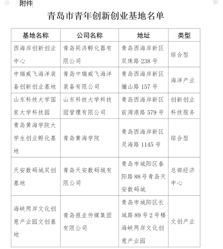 《關于認定青島市青年創新創業基地的通知》