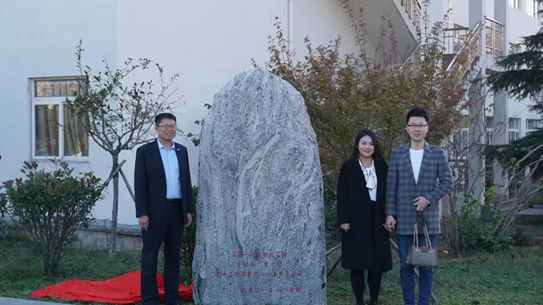 八德路,見證了黃海的成長。第二場泰山石捐贈儀式于八德路東北角舉行,儀式開始,首先由俞志老師講話,感謝于壯壯、李君俏夫妻對學校的捐贈。隨后于壯壯發言,表達了對同學們獨當一面的美好祝愿和期待以及對黃海母校未來發展的美好憧憬。孫在福院長和于壯壯、李君俏夫妻一起為泰山石揭幕,在紅綢掀開的一瞬間現場響起了熱烈的掌聲。