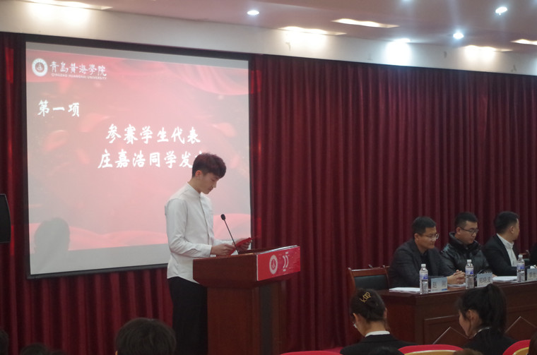 首先,參賽學生代表莊嘉浩同學上臺發言。他表示,此次技能文化節既鍛煉了同學們創新思維和專業能力,又給予同學們實踐的機會,使實踐的產出為理論寫下生動注腳。