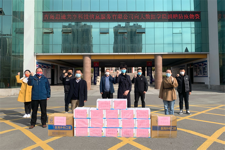 為助力學校疫情防控工作,3月31日青島思途共享科技信息服務有限公司向我校大數據學院捐贈7000只口罩、500瓶84消毒液,為我校大數據學院的防疫工作貢獻一份力量。