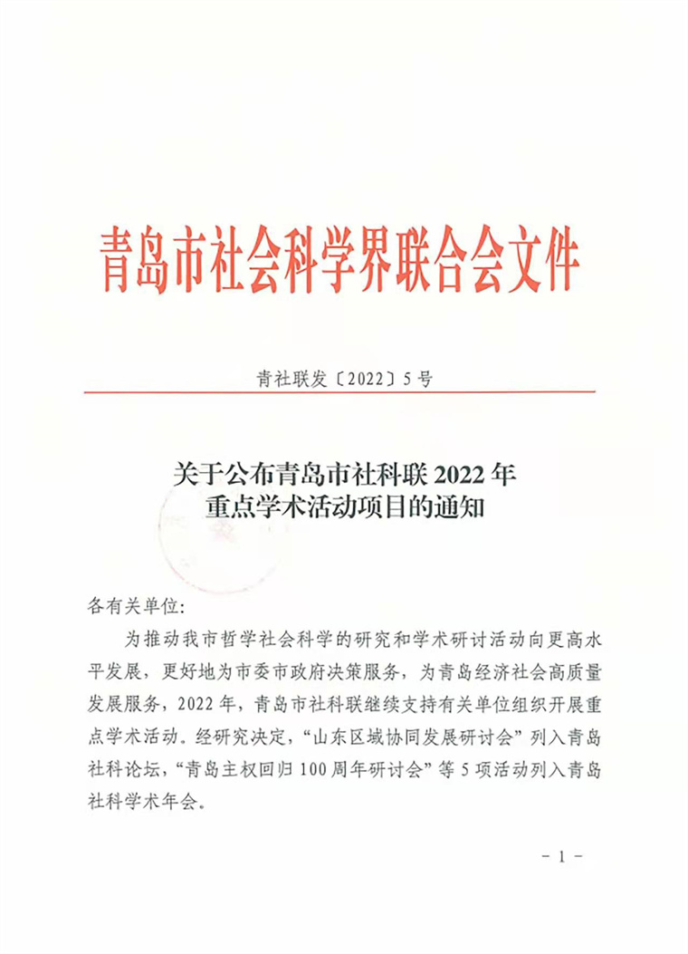 我校獲批青島市社科聯2022年重點學術活動項目