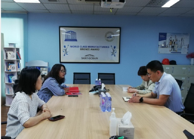 考察第二站來到圣戈班中硝安全玻璃(青島)公司。考察中,校企雙方進行座談,雙方分別介紹了單位情況,雙方就實習就業、人才培養等問題進行交流溝通,并參觀了企業的生產車間。