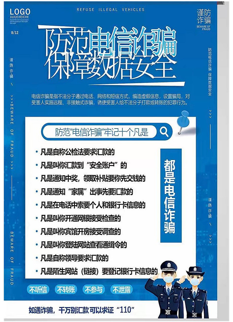 為深入學習宣傳習近平總書記關于網絡強國的重要思想,貫徹落實網絡安全工作“四個堅持”重要指示精神,進一步提升大學生安全意識和網絡辯別能力,青島黃海學院于9月9日至9月12日舉行“全民反詐,你我同行”網絡安全教育優秀宣傳海報征集活動。