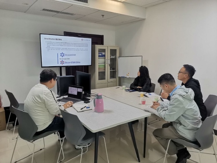 隨后,船舶工程系一行來到了瀚辰船舶與海洋工程(青島)有限公司,瀚辰船舶與海洋工程(青島)有限公司致力于海洋工程裝備設計、海洋工程及船舶項目咨詢、設計、管理、銷售、海洋工程及船舶相關設備等。企業負責人許總介紹了公司的現狀、發展方向、經營理念、崗位需求以及我校在職學生工作情況。杜友威主任向企業介紹了我校船舶與海洋工程專業的基本情況,并就學生實習、企業導師引進、畢業設計等方面表達合作意向。
