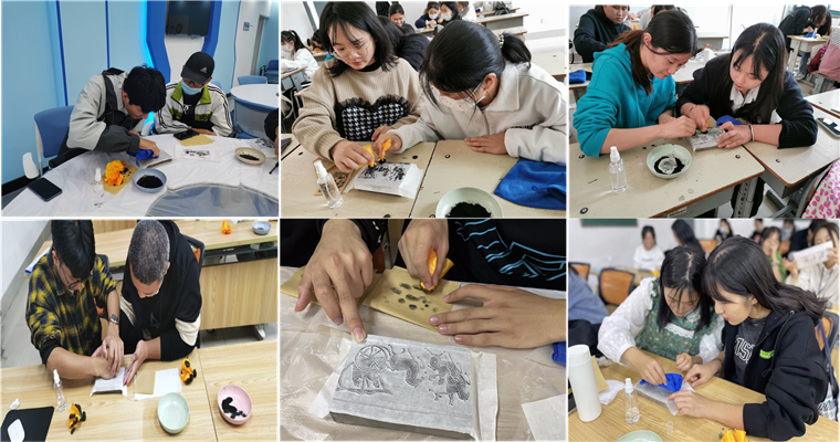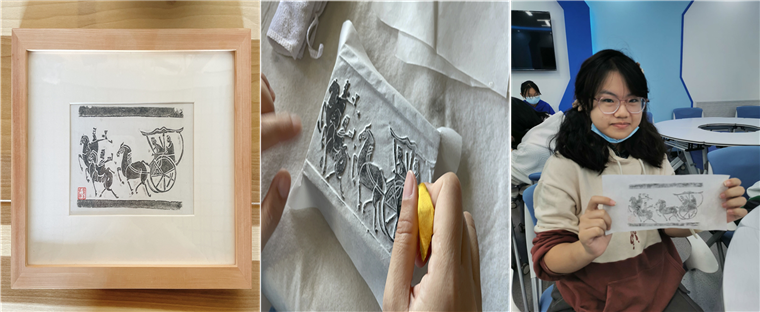 提到傳承,大家對漢字的發展、演變、流傳的載體充滿了興趣。因此,在知識講解過后,我們迎來了課堂實踐部分——拓印工藝體驗。