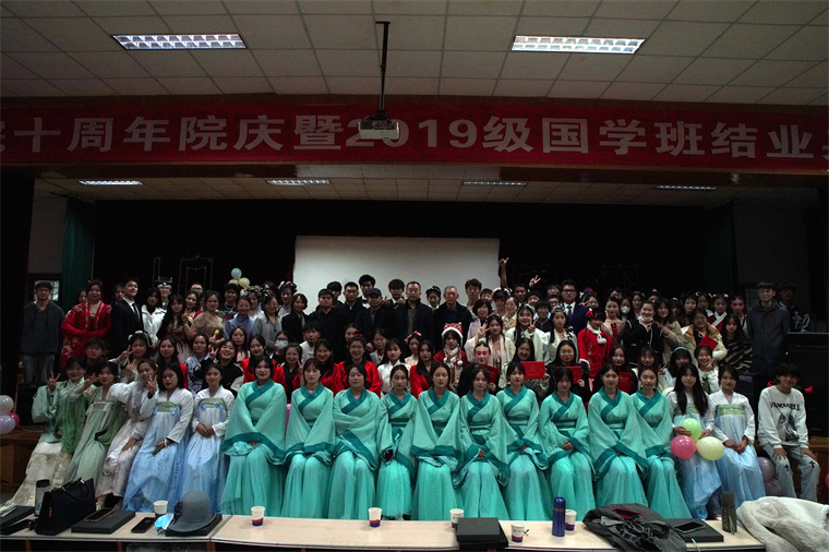 十年風雨同舟,十年春華秋實,十年感恩奮進,十年一路同行。2022年11月17日晚,青島黃海學院國學院建院十周年晚會暨2019級國學班結業典禮在知明樓大禮堂隆重舉行。青島黃海學院國學院院長于善懃、副院長張維霖以及國學院全體教師參加了此次慶典活動。晚會通過青島黃海學院官方抖音平臺進行了全程直播。并收到了各地專家學者及校友發來的祝福視頻。