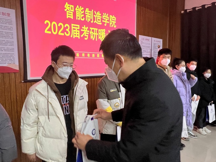 12月13日下午,智能制造學院院長劉紀新、院長助理周淑芳、齊海明在301會議室給2022考研學子送上暖心大禮包。2023屆輔導員老師及考研學生代表參加了活動。