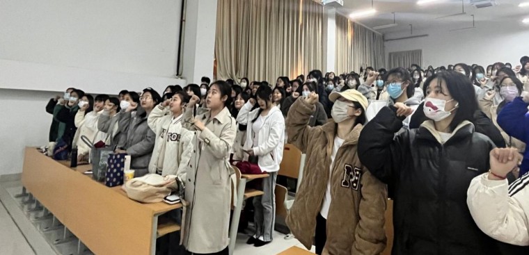 會議的最后,由22級學前教育專科學生代表和彭婕老師帶領下,全體同學進行幼兒園教師的宣誓活動,同學們通過誦讀莊嚴神圣的誓言,感受幼兒園教師的莊嚴使命,進一步加深了對教育見習工作的認識及重視。