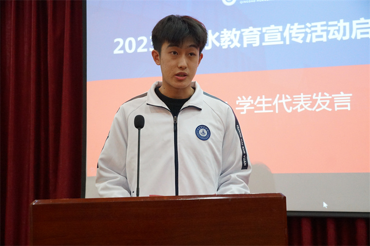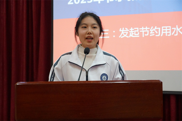 隨后,學生代表與校領導發言,并提出節約用水倡議: