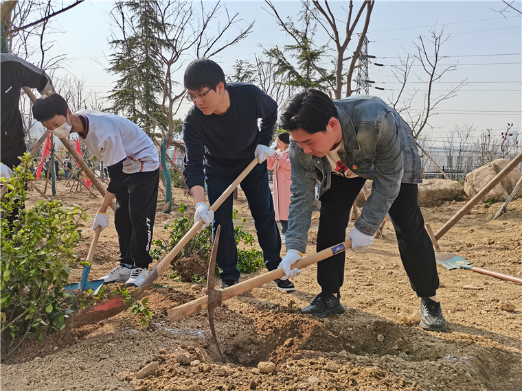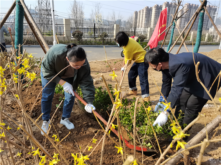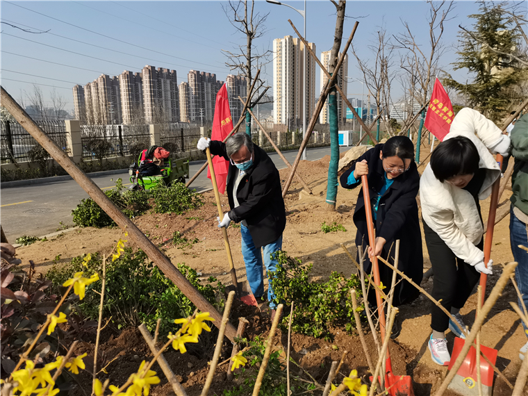 跟隨著春天的腳步,又是一年植樹季。傳遞文明“植”于心,播種綠色“樹”未來。為貫徹落實習近平總書記關于生態優先、綠色發展的重要指示精神,進一步樹立“綠水青山就是金山銀山”的理念,努力打造人與自然和諧共生的環境育人和生態育人并重的校園。馬克思主義學院與體育教學部黨總支全體黨員以及積極分子于3月28日上午在學校西區18號學生宿舍樓南邊小廣場開展“共植初心樹 黨員先鋒行”義務植樹主題黨日活動。
