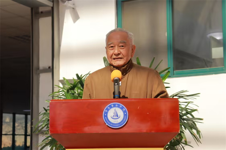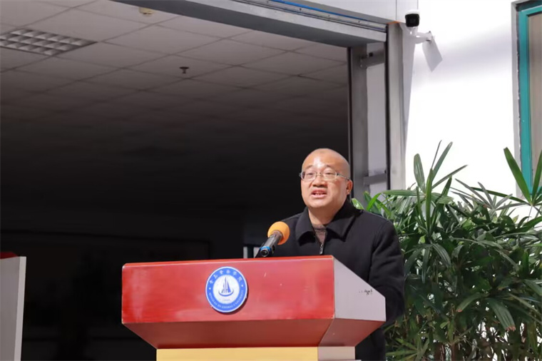 隨后,邱振亮教授發表致辭。邱教授在講話中提到青島黃海學院曾是自己工作過的地方,在這里有很多美好的回憶,此次重回黃海學院參觀學習并參加北海書舫揭牌儀式,內心無比激動,同時也被專家學者對教育無私奉獻的精神所折服,希望更多的學者能加入到青島這個美麗的城市,為青島城市文化、高等教育增光添彩。