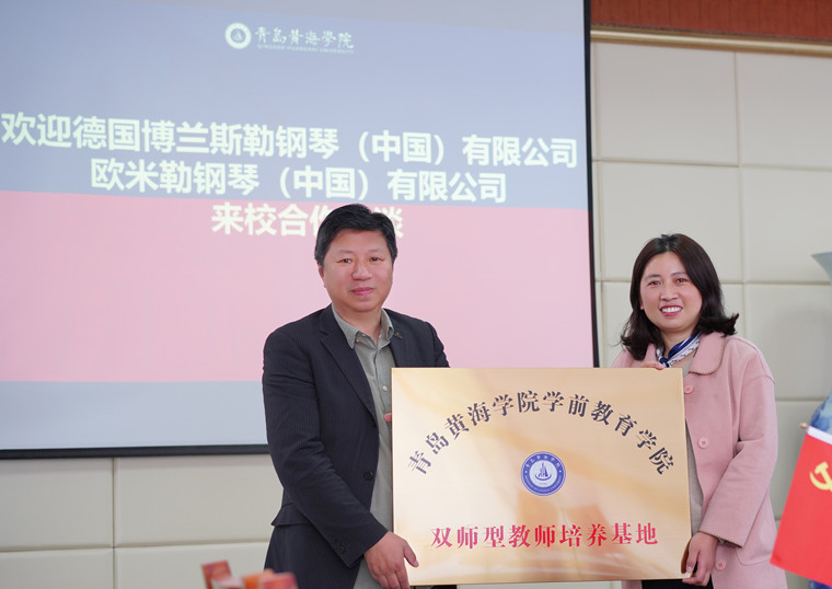 為深化產教融合,創新人才培養模式,充分發揮學校與企業雙方優勢更好地為社會、為企業培養高素質應用型學前教育及音樂教育人才,同時也為本校大學生實習、實訓、就業、創業提供更多空間,4月27日,青島黃海學院與德國歐米勒鋼琴(中國)有限公司校企合作聘任及授牌儀式在青島黃海學院行政樓201會議室隆重舉行,會議由學前教育學院院長助理劉藝敏主持。