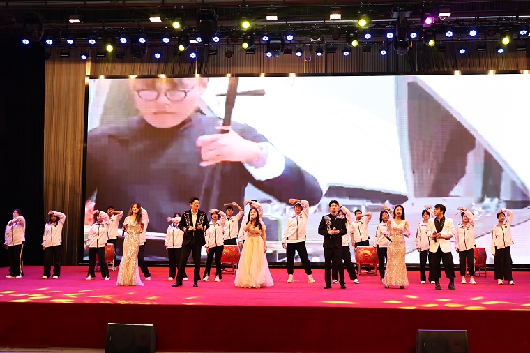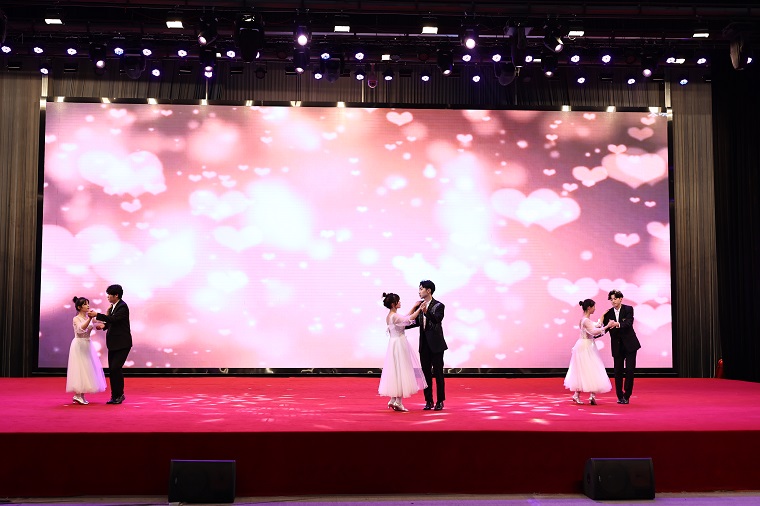 本次晚會分為五個篇章,第一個篇章“以青春之花,結奮斗之果”由建筑工程學院帶來的鼓點歌曲《相親相愛》拉開序幕;隨后,國學社表演的民樂合奏《瑤族舞曲》將現場氣氛帶到了第一個高潮;由學前教育學院帶來的影子舞《愛的華爾茲》展現了黃海學子優雅端莊的氣質。