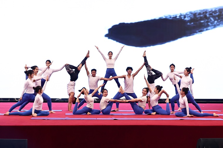 頒獎結束后,晚會迎來第二篇章“以創新之帆,推成功之船”,公寓自律委員會帶來的小品《同學你好》引起同學們深深的情感共鳴;由瑜伽協會帶來的瑜伽舞《霍元甲》則展現了黃海學生矯健的身姿和蓬勃向上的精神。