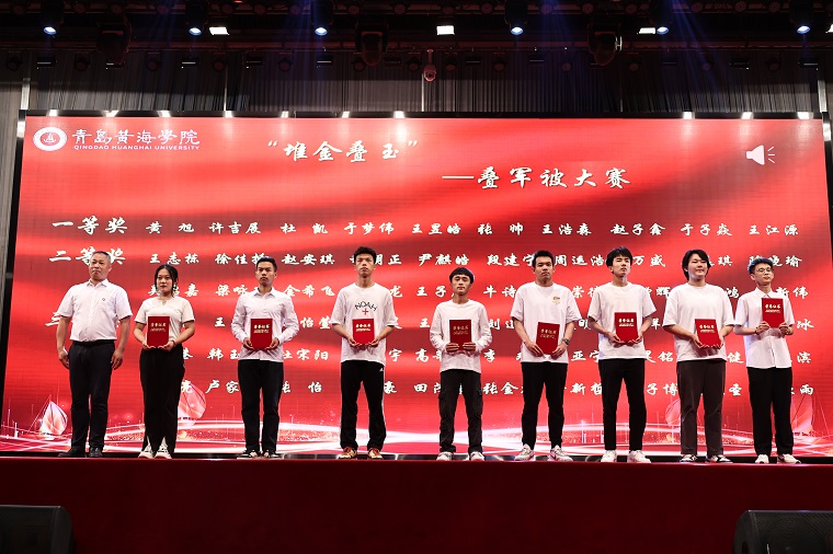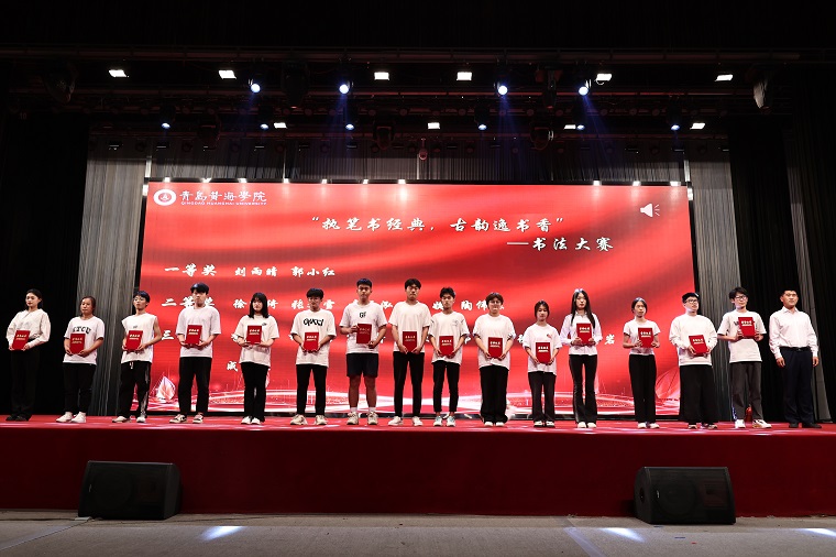 本輪表演結束后,智能制造學院院長助理齊海明、劉潤強,學前教育學院院長助理張龍潔為在以下三項比賽中獲獎的同學們頒獎,分別是:“堆金疊玉”—疊軍被大賽(8人)、“執筆書經典,古韻逸書香”—書法大賽(15人)、“談寢遇知音,論戰在黃海”—黃海校園辯論賽(13人)。