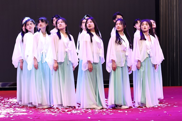 本輪頒獎結束后,晚會進入第三篇章“以青春之我,逐華夏之陽”,公寓自律委員會帶來的抗疫朗誦《感恩黃海,疫路有你》讓我們重溫黃海抗疫的溫暖瞬間;由學前教育學院帶來的群體舞蹈《雨露之恩》,用舞蹈展現出了萬物復蘇的冉冉生機。