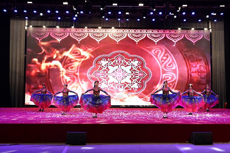 晚會來到第四個篇章“聚青春之火,燃時代之光”,首先,由公寓自律委員會帶來的歌曲《忘記時間》,將晚會帶向又一個高潮,然后由努熱比亞等六位維吾爾族的同學為我們帶來極具民族特色的新疆舞,維族姑娘們的優美舞姿讓我們感受到了來自新疆的熱情。