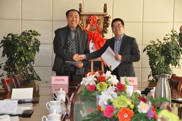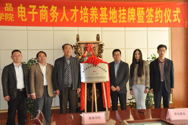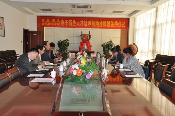 2014年10月15日,我校與青島聚品電子商務有限公司共建電商人才培養基地掛牌暨簽約儀式在我校辦公樓201會議室舉行。出席儀式的有青島聚品商學院院長衣明、青島聚品電子商務有限公司經理馮夢雪,我校黨委副書記宋慶澤、教務處處長梁忠環,黃海學院大學生就業創業孵化基地主任王玉寶、副主任張永彬,以及來自青島電視臺、青島財經日報等媒體朋友共同見證了這一時刻。我校教務處處長梁忠環主持了簽約儀式。
