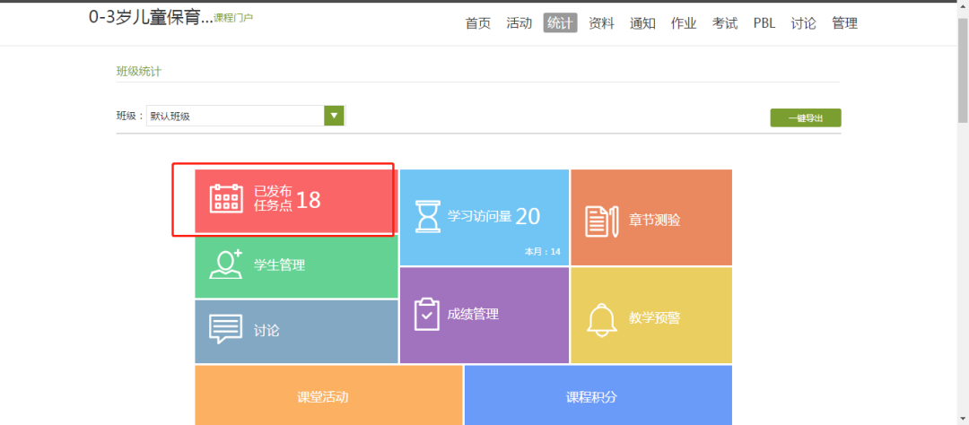 3.選擇所要查看的班級,點擊“統計”按鈕。(以“默認班級”舉例)