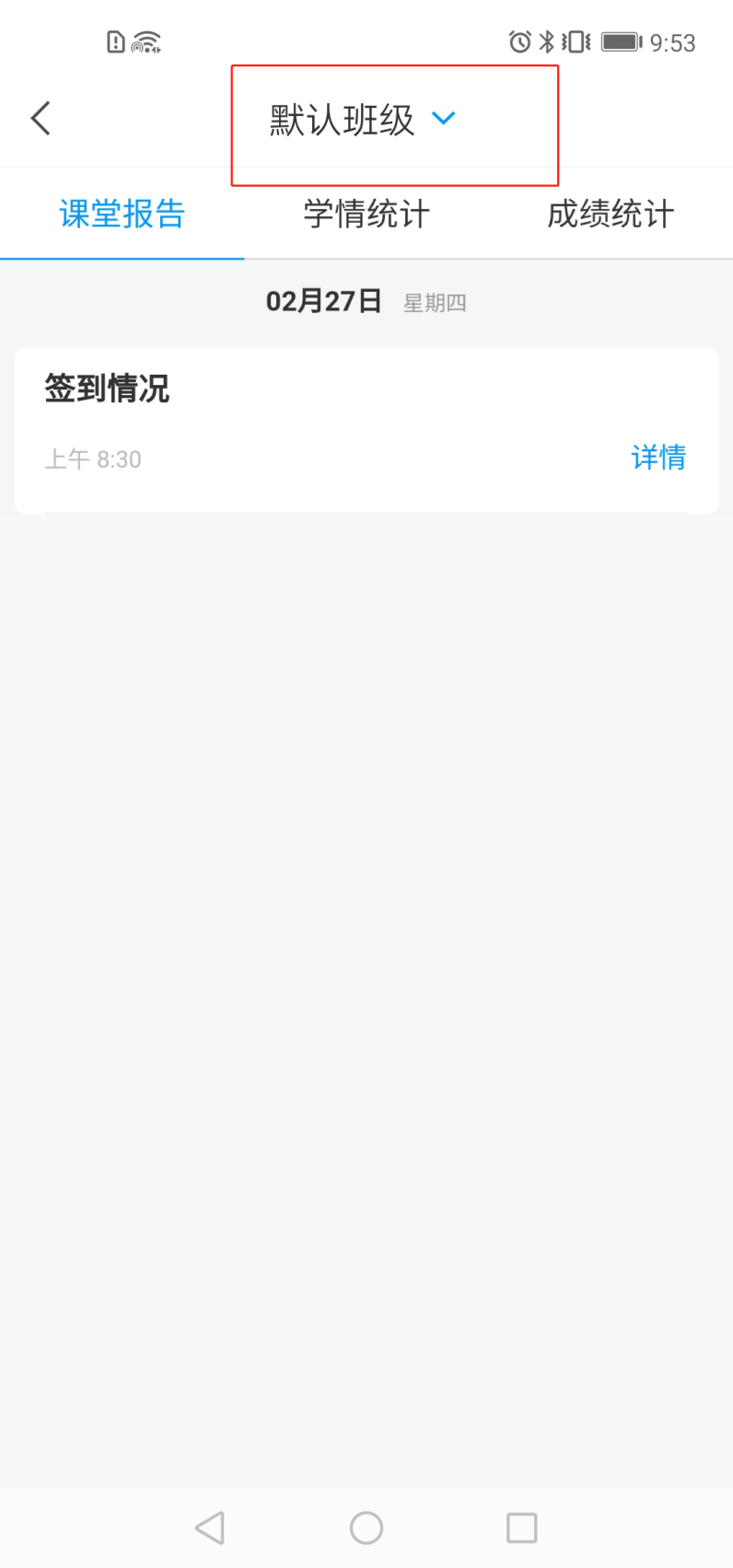 5.選擇所要查看的班級,可分別查看“課堂報告”、“學情統計”以及“成績統計”。