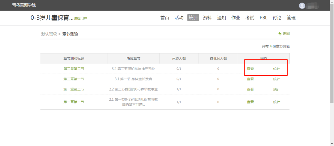 4.點擊“統計”,查看具體學情。