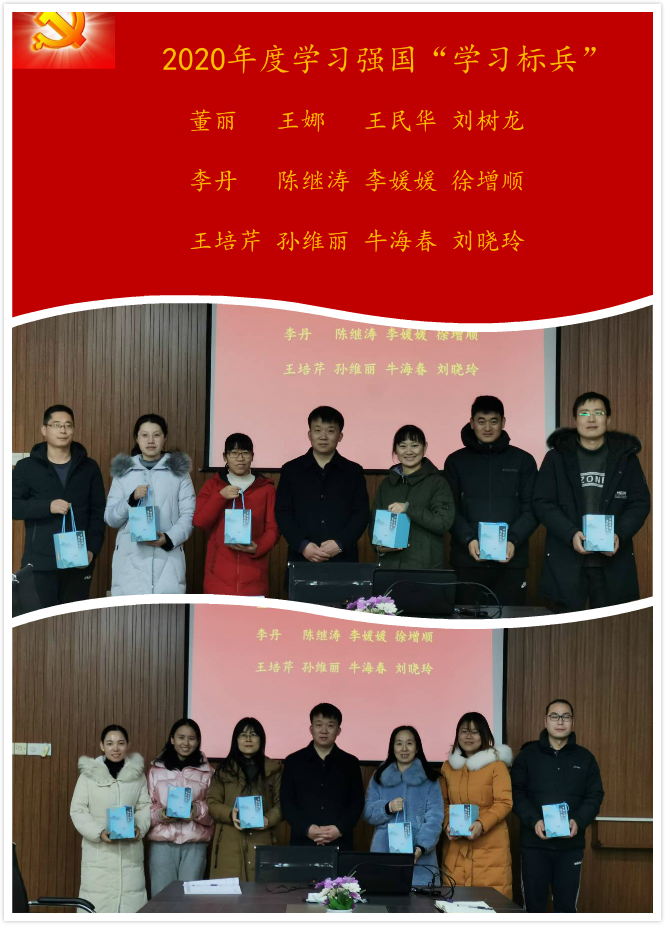 大會同時對2020年度學習強國12名“學習標兵”進行了表彰,并合影留念,孫豐鑫書記對獲得“學習標兵”的黨員同志表示熱烈祝賀,并鼓勵和號召大家在黨的統一領導下,積極學習一些正能量的而且是有深度的東西,以此促進整個中華民族素質的提升。